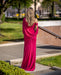 Duga haljina sa šalom oko ramena
